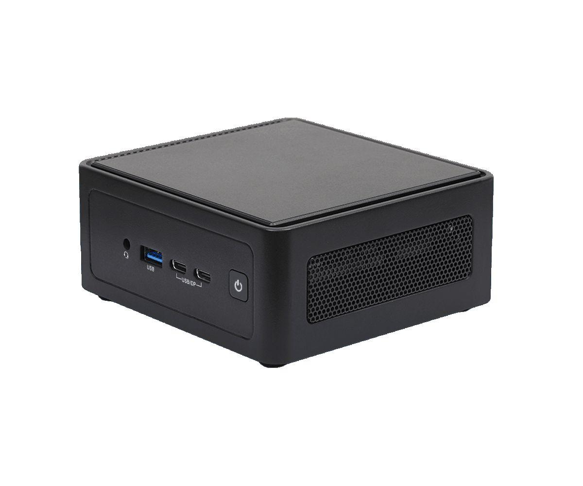 Mini PC, No OS, Intel Core i3-100U, Intel Chipset, Memória nélkül, WLAN, 2,5 Gigabit, 2.0, Intel Arc Graphics, 1xUSB2.0, 3xUSB3.2, 2xUSB Type-C, HDMI, 117x112x37mm, Black, Bluetooth, Teljesítmény felvétel120W