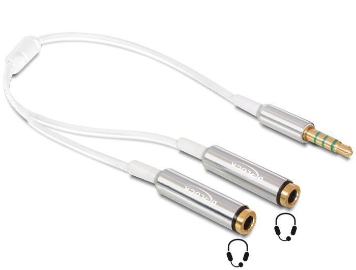 DeLock Cable audio splitter stereo jack male 3.5mm 4 pin > 2x stereo jack female 3.5mm 4 pin 25cm